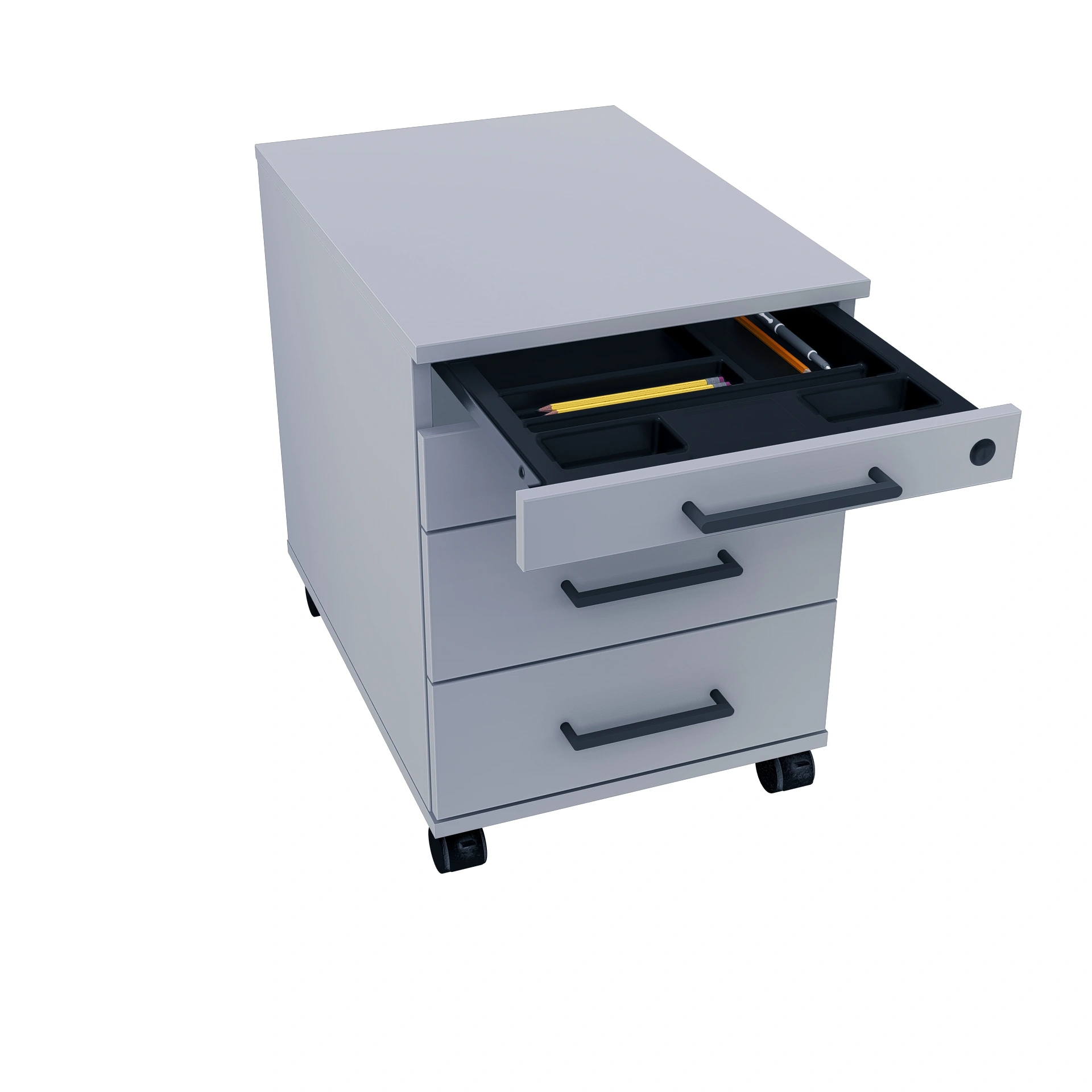 Zaprojektowany z dbałością o detale kontenerek biurowy to doskonałe rozwiązanie do przechowywania dokumentów i drobnych akcesoriów biurowych. Zbudowany z plastikowego wkładu oraz solidnej płyty meblowej o grubości 18mm, gwarantuje trwałość i niezawodność przez wiele lat.