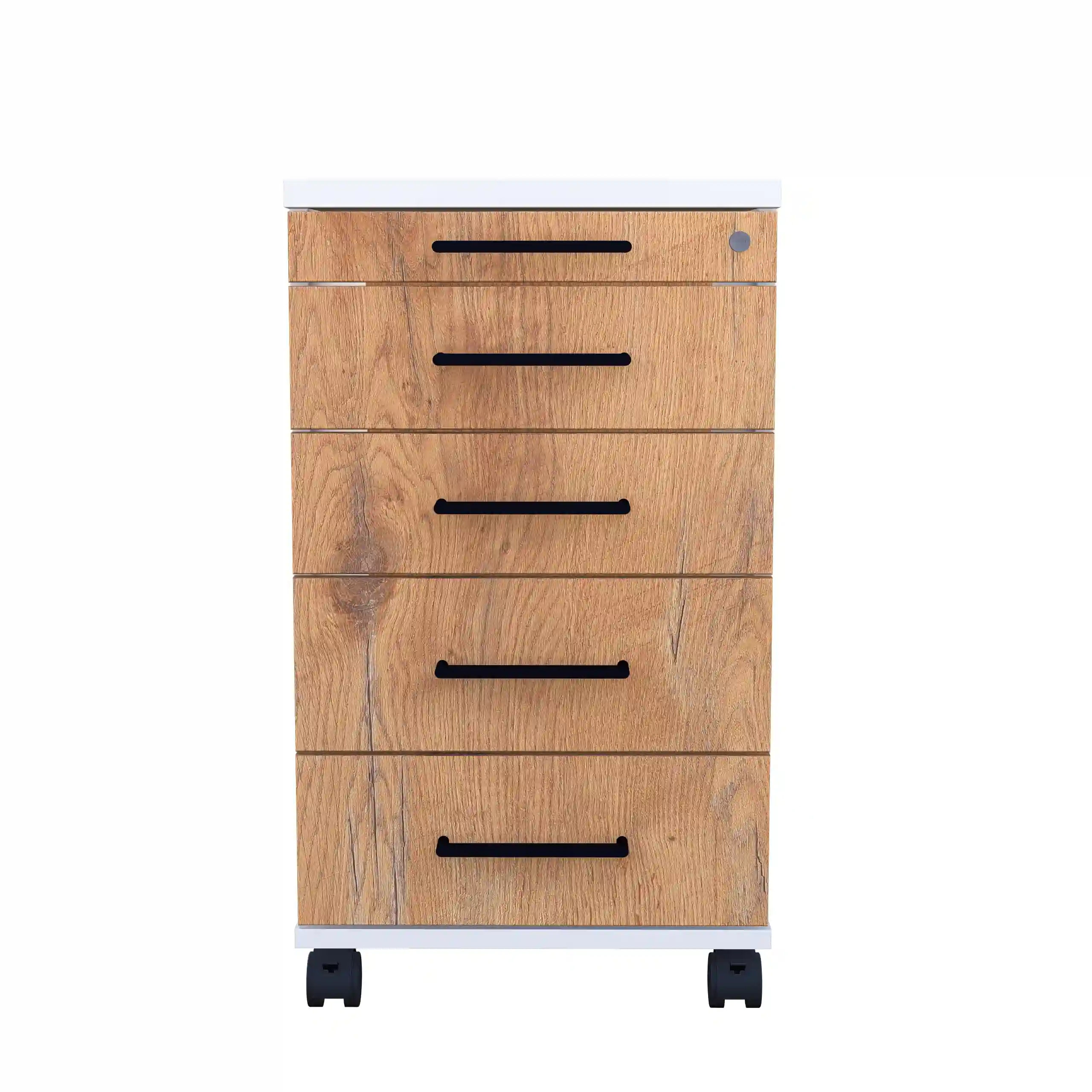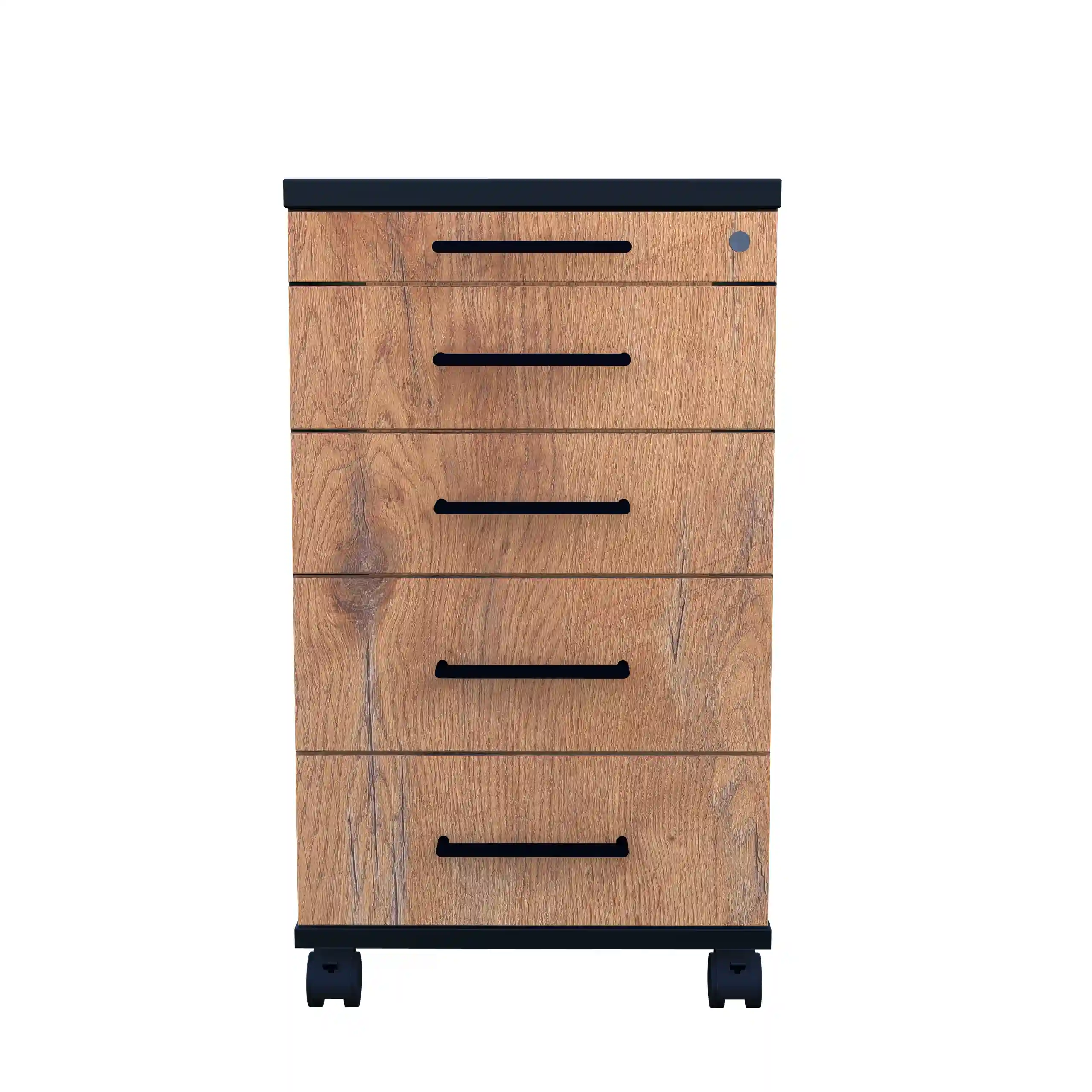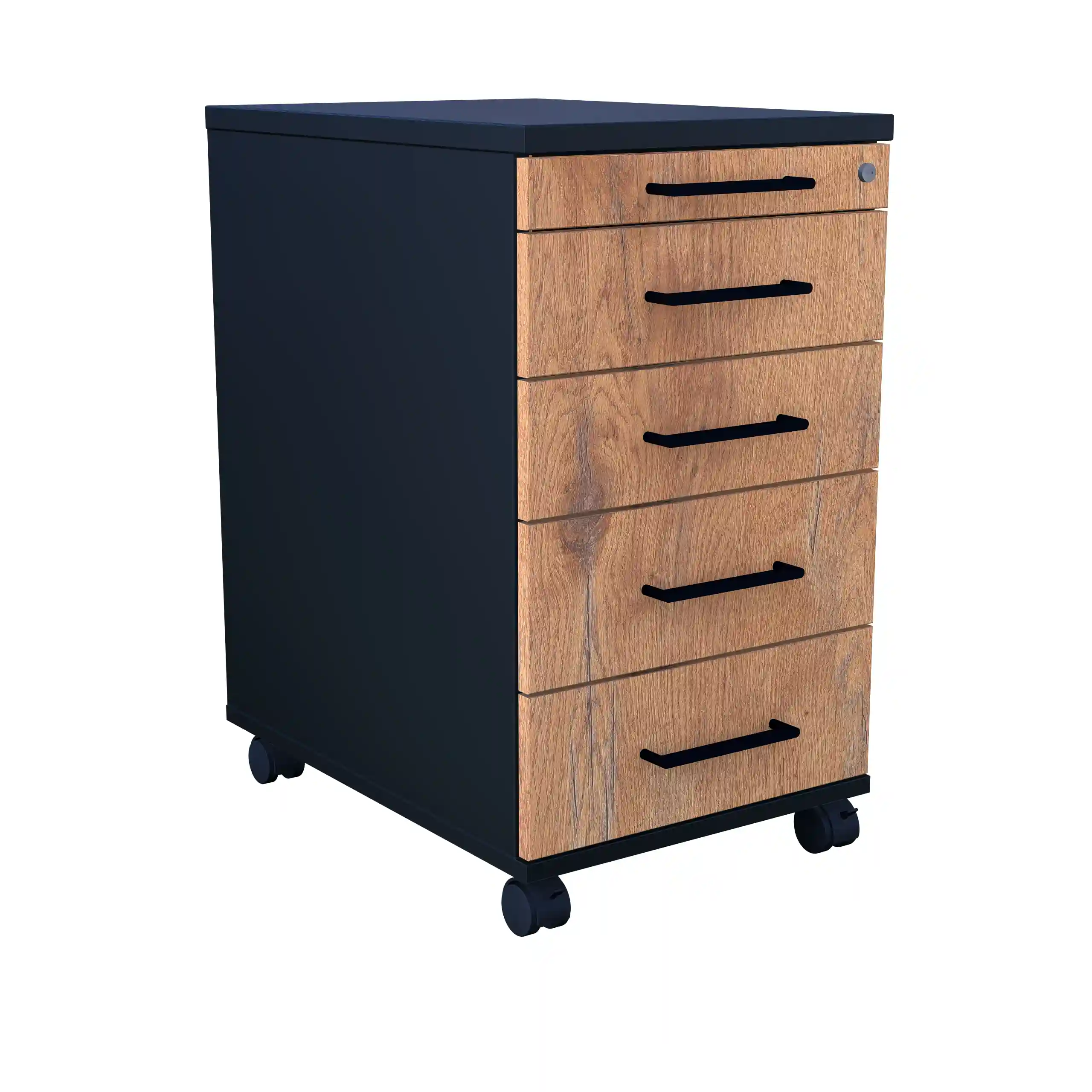 Kontenerek pod biurko LOFT Flex pięcioszufladowy Dąb Lancelot to niezastąpiony element wyposażenia każdego nowoczesnego biura, zapewniający funkcjonalność i stylowe wykończenie przestrzeni pracy.