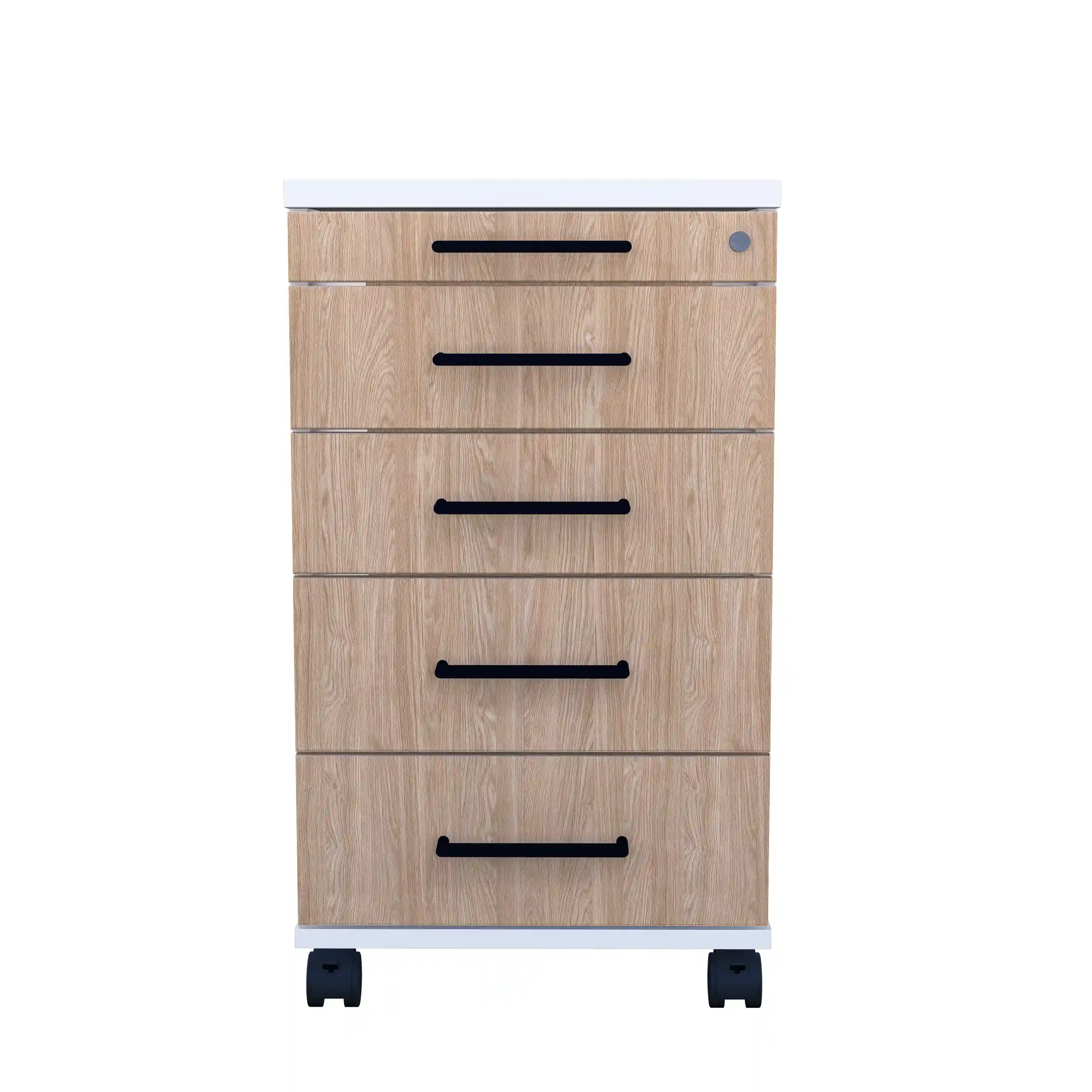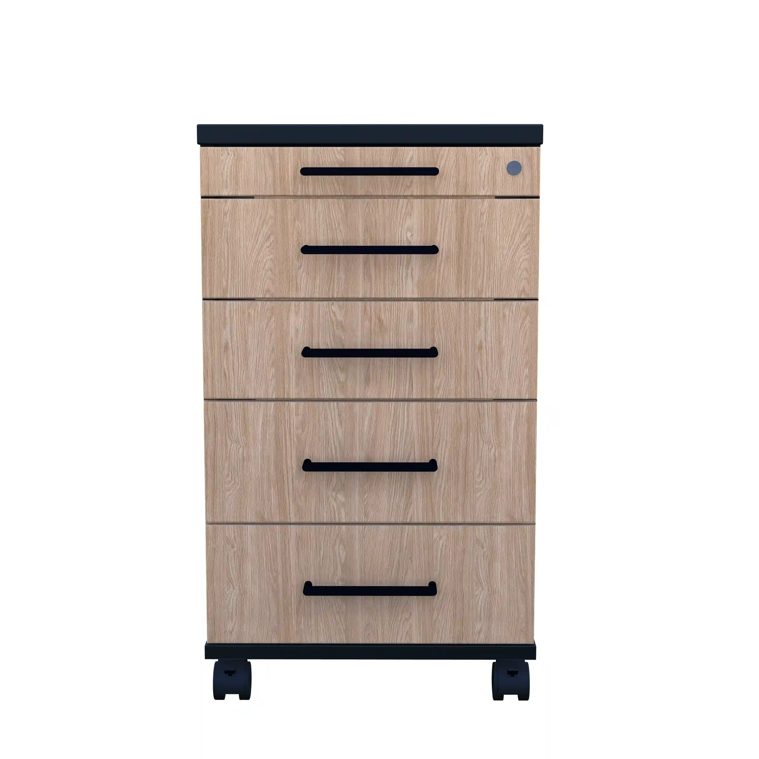 Kontenerek pod biurko LOFT Flex pięcioszufladowy Dąb Olejowany to niezastąpiony element wyposażenia każdego nowoczesnego biura, zapewniający funkcjonalność i stylowe wykończenie przestrzeni pracy.