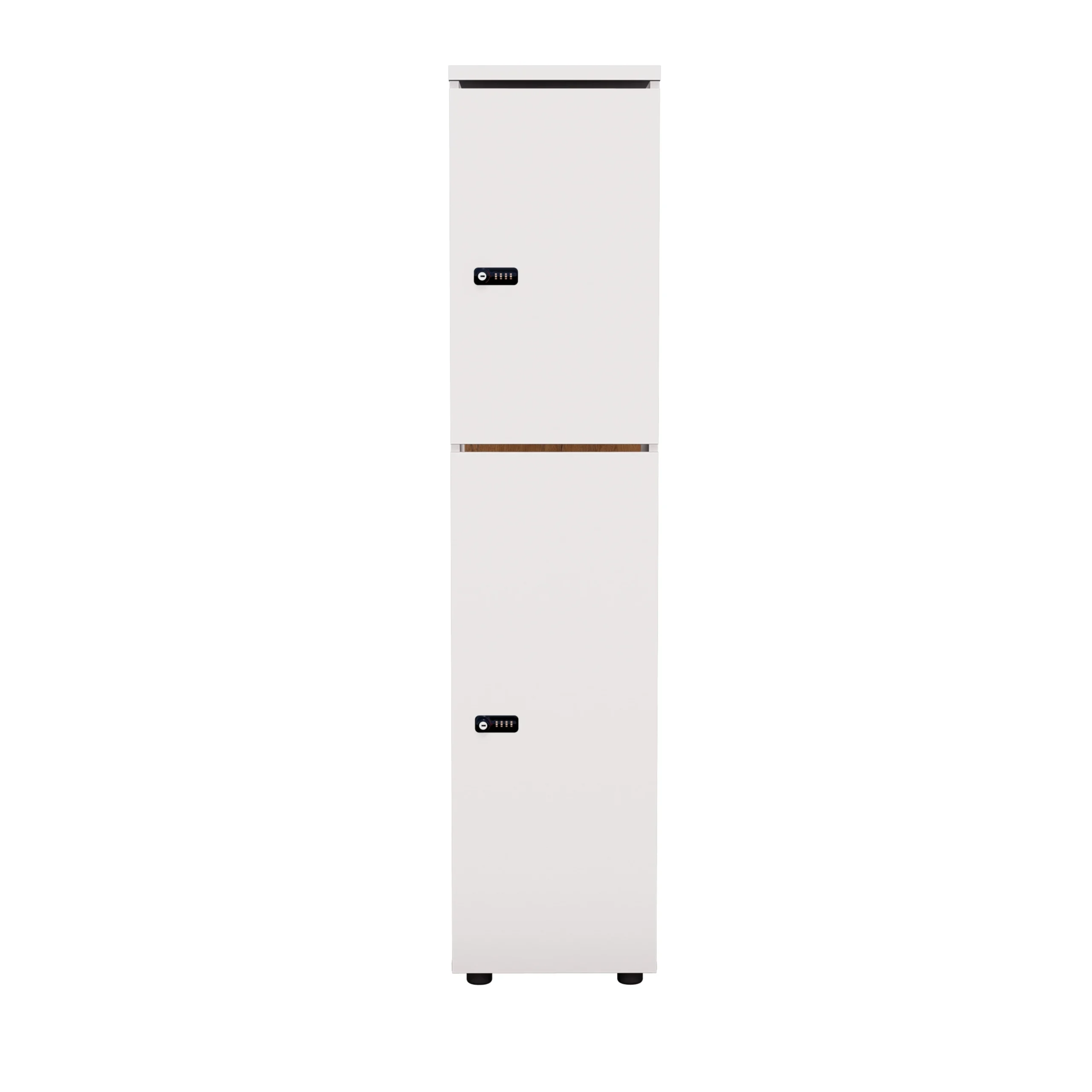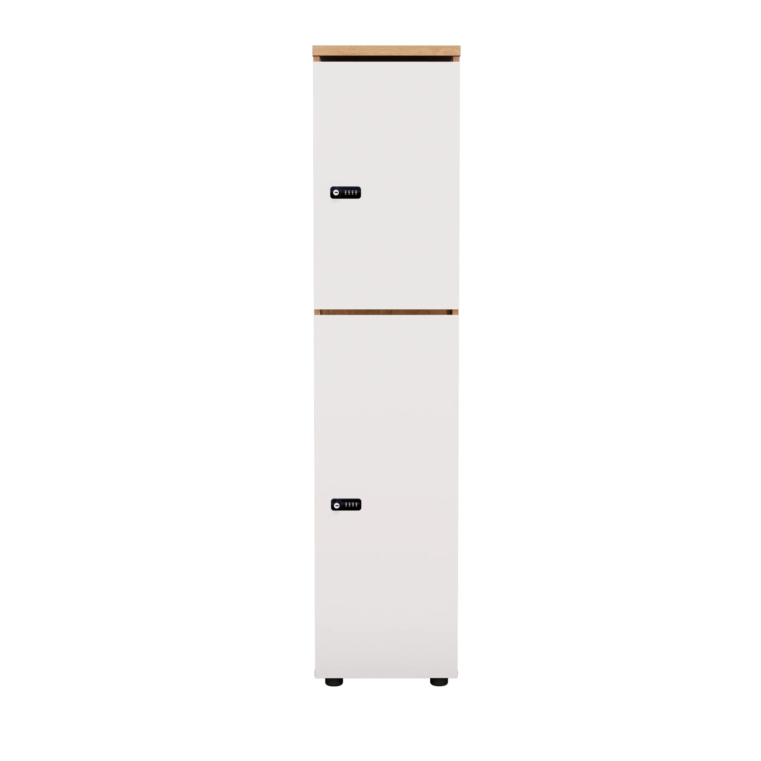 Przykładowy zestaw składający się z pięciu segmentów z frontami w dekorach Biel Perłowa i Eukaliptus. W jego skład wchodzą: 2x RENO 5OH (5 skrytek), 2x RENO 5OH 2D (2 skrytki), 1x RENO 5OH 4D (4 skrytki) Wszystkie segmenty zostały wyposażone w dodatkowe zamki szyfrowe.Skontaktuj się z nami, a pomożemy Ci skonfigurować idealny zestaw