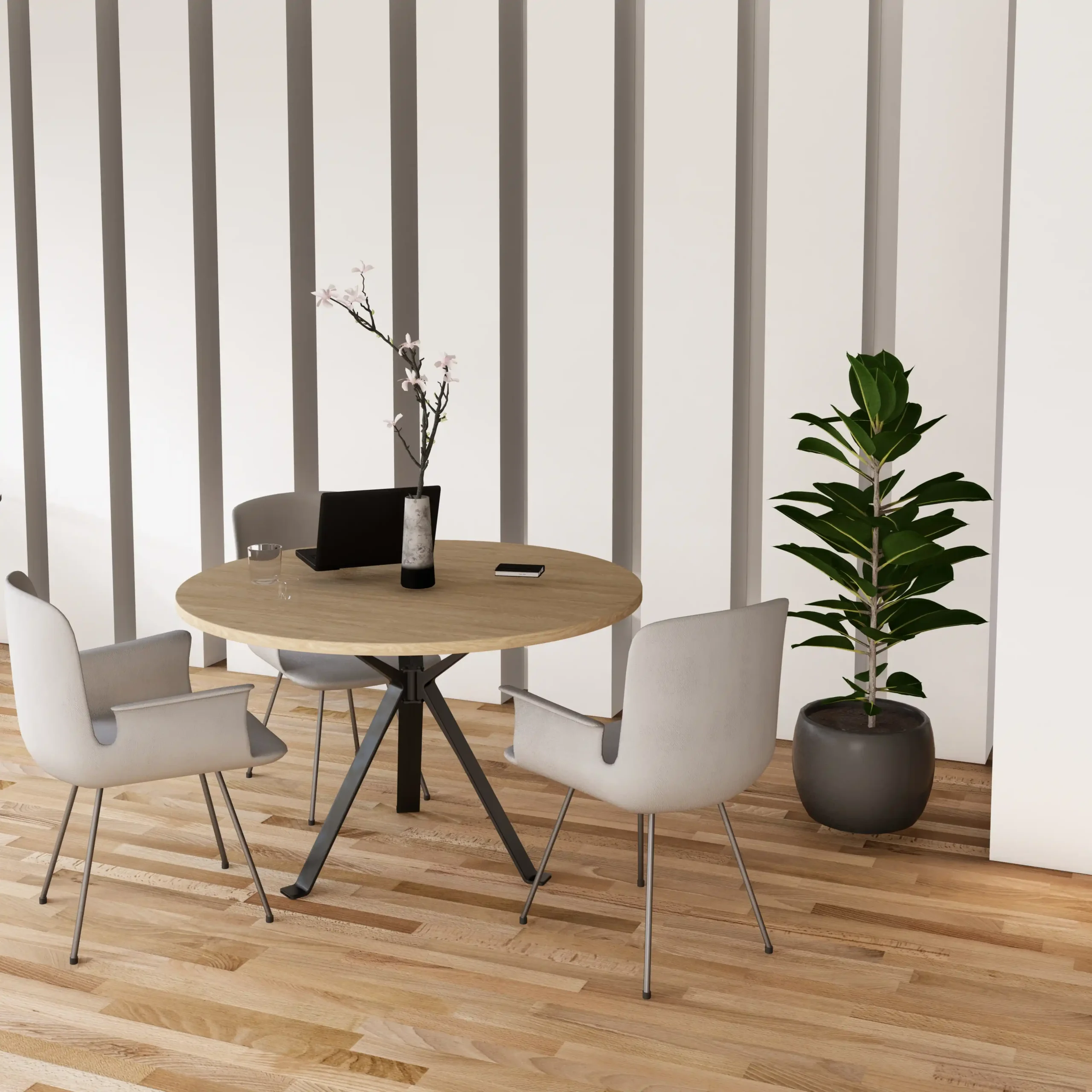 Stół konferencyjny LOFT okrągły EX720 to stylowy i solidny stół do spotkań, idealny do biur i sal konferencyjnych. Wyposażony w wytrzymały, spawany stelaż malowany proszkowo (czarny lub biały) i gruby blat 36 mm w dekorze Dąb Lancelot. Dostępny w różnych rozmiarach – dopasuj go w konfiguratorze do swoich potrzeb.