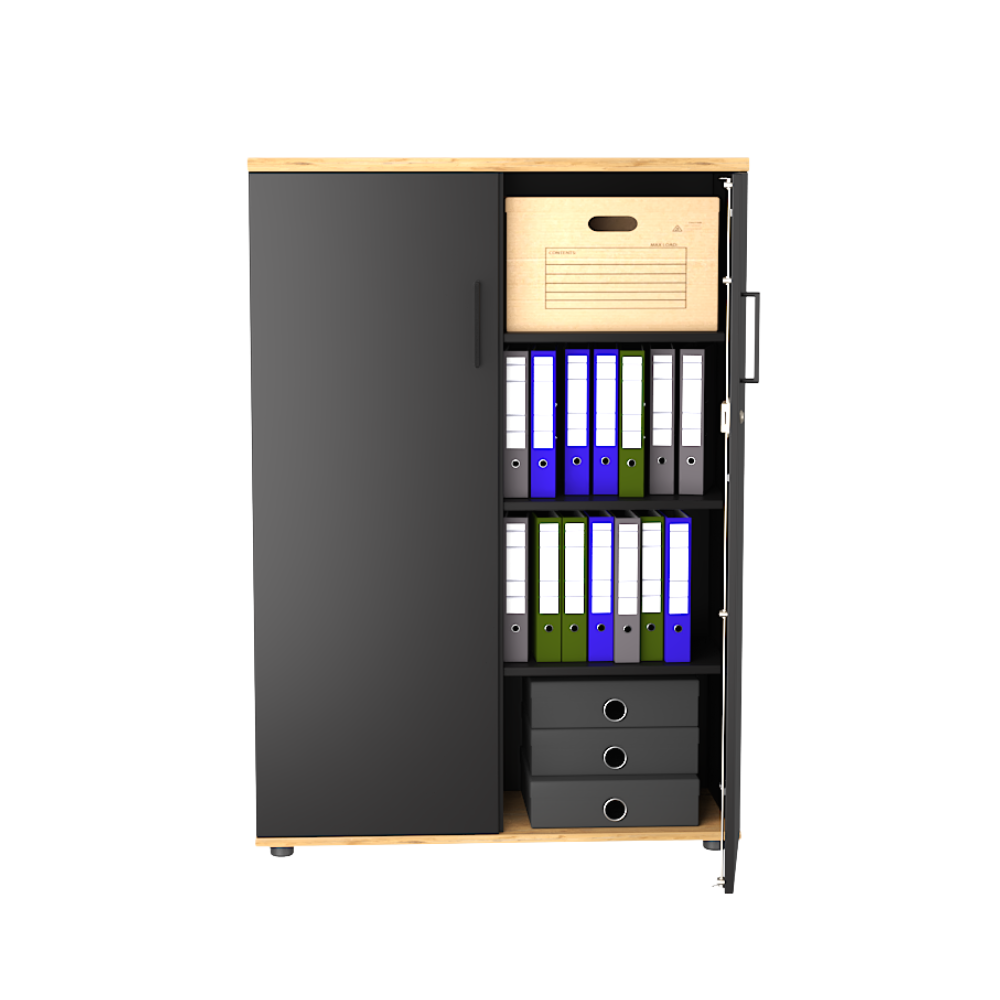 Zaprojektowana z dbałością o detale to doskonałe rozwiązanie do przechowywania dokumentów i drobnych akcesoriów biurowych. Zbudowany z solidnej płyty meblowej o grubości 18 mm, gwarantuje trwałość i niezawodność przez wiele lat.